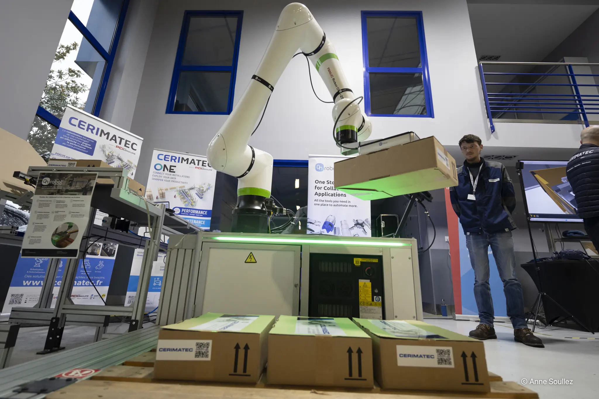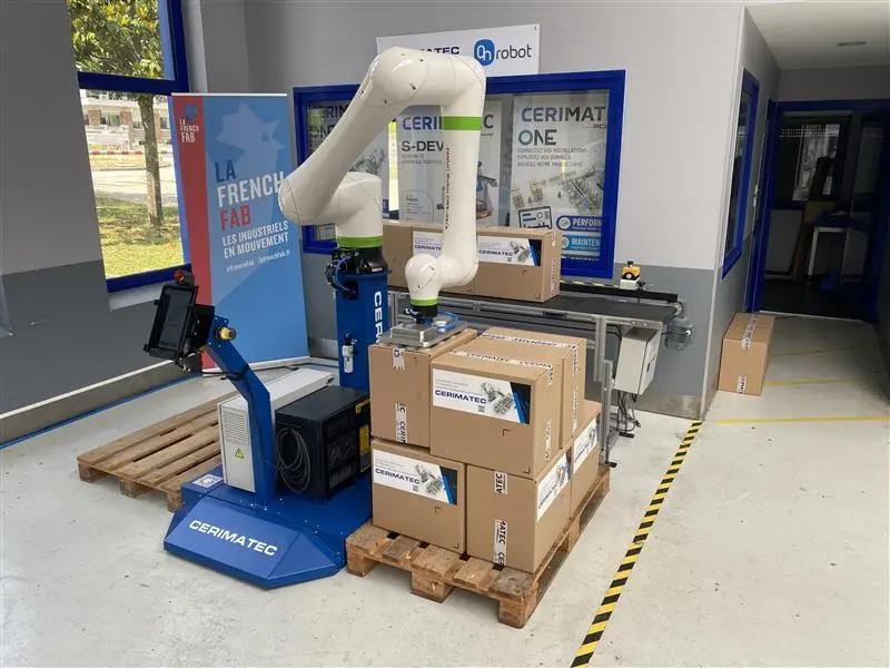Avec S:PAL, Cerimatec propose une solution de palettisation collaborative, compacte et flexible. Pensé pour travailler en toute sécurité aux côtés de vos opérateurs, S:PAL automatise vos fins de ligne sans lourds investissements ni infrastructures complexes. Boostez votre productivité tout en préservant l’agilité de votre atelier.